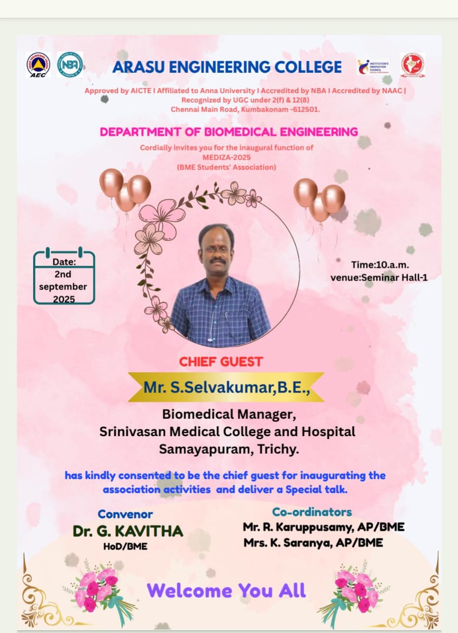 Department of Biomedical Engineering organizes the students ‘ Association inauguration ” MEDIZA- 2025″ on 02.09.2025