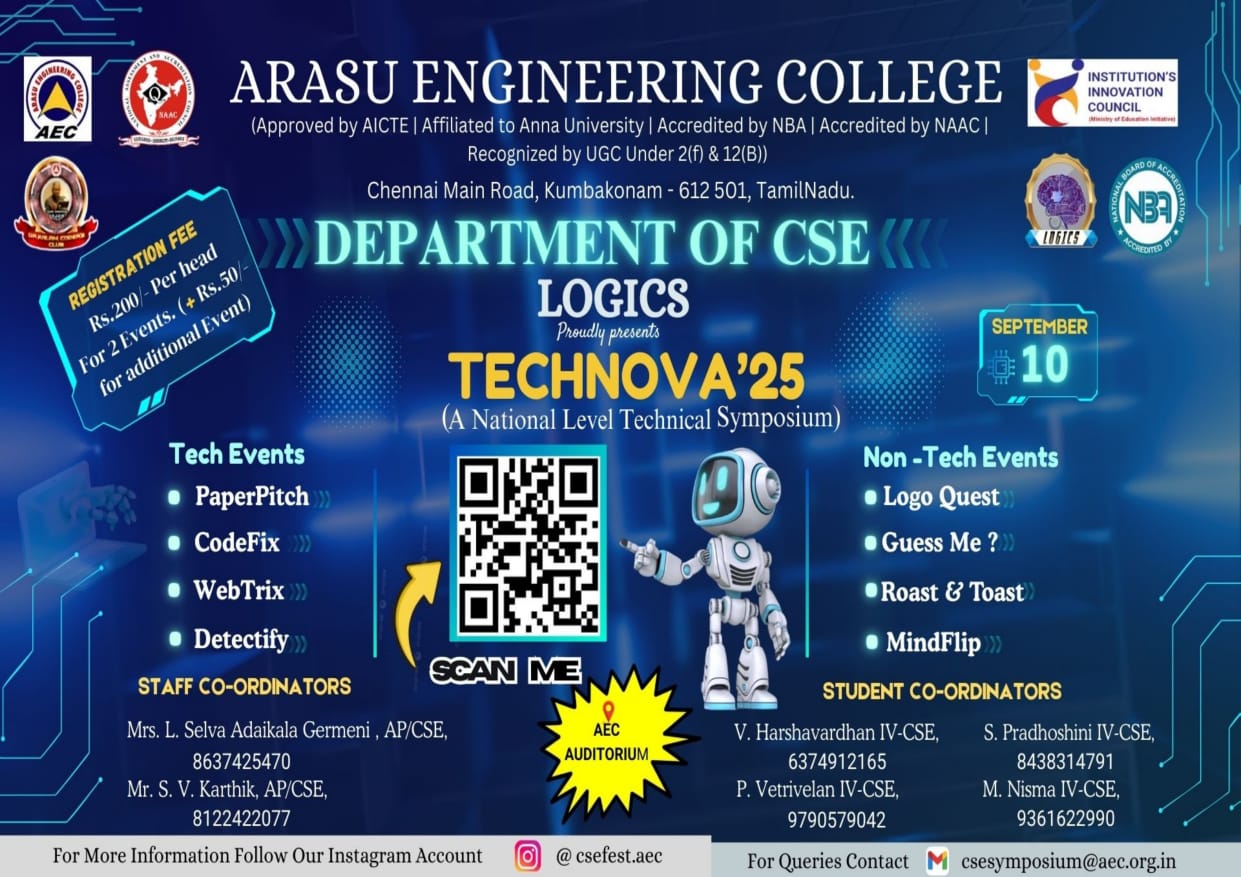 Department of Computer Science and Engineering Organizes the National Level Technical symposium TECHNOVA’25 on 10.09.25