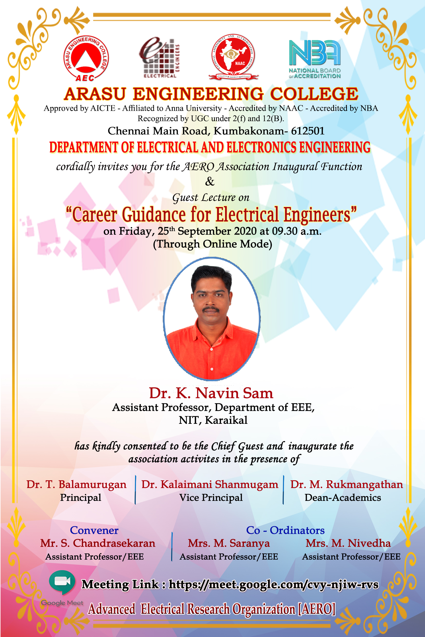Department of EEE AERO Association Inaugural Function Come Guest Lecture on Career Guidance for Electrical Engineers