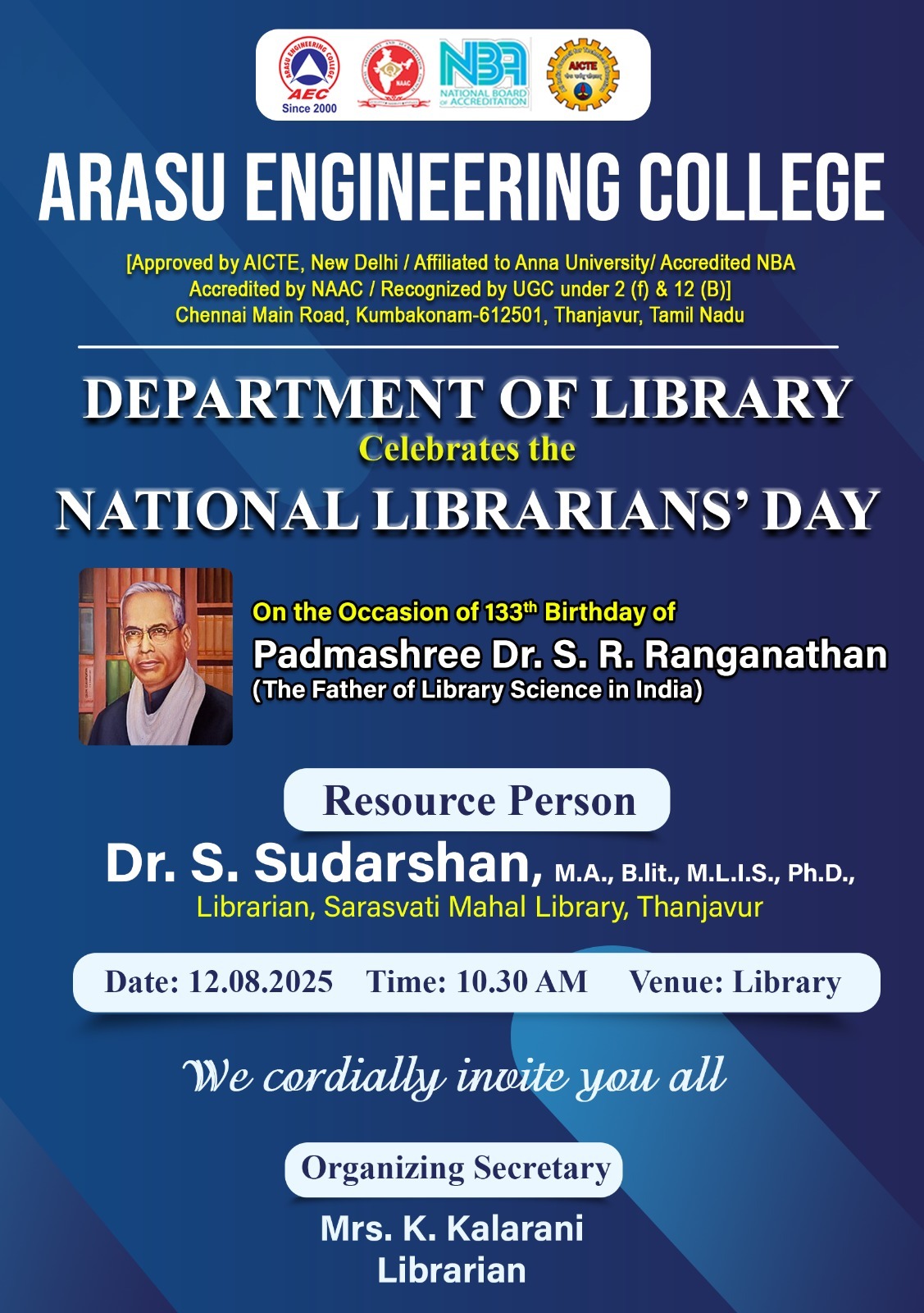 Department of Library organizing the celebration of “National Librarians Day” on the occasion of 133th Birthday of Padmashree Dr. S. R. Rangarajan (The father of Library Science in India) on 12.08.25