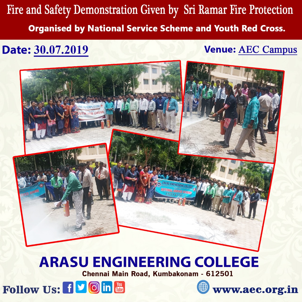 Fire and Safety demonstration given by Sri Ramar Fire Protection, Kumbakonam, in presence of Principal, Vice Principal, Dean Academics, various departments HoDs and Staff Members and student volunteer’s.