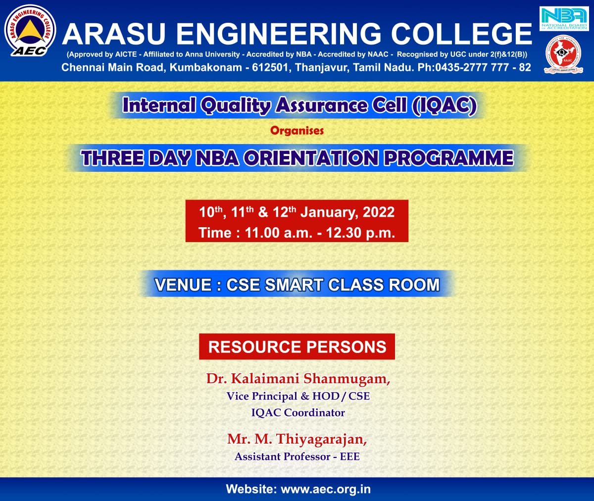 Internal Quality Assurance Cell(IQAC) Organized Three day NBA Orientation Programme