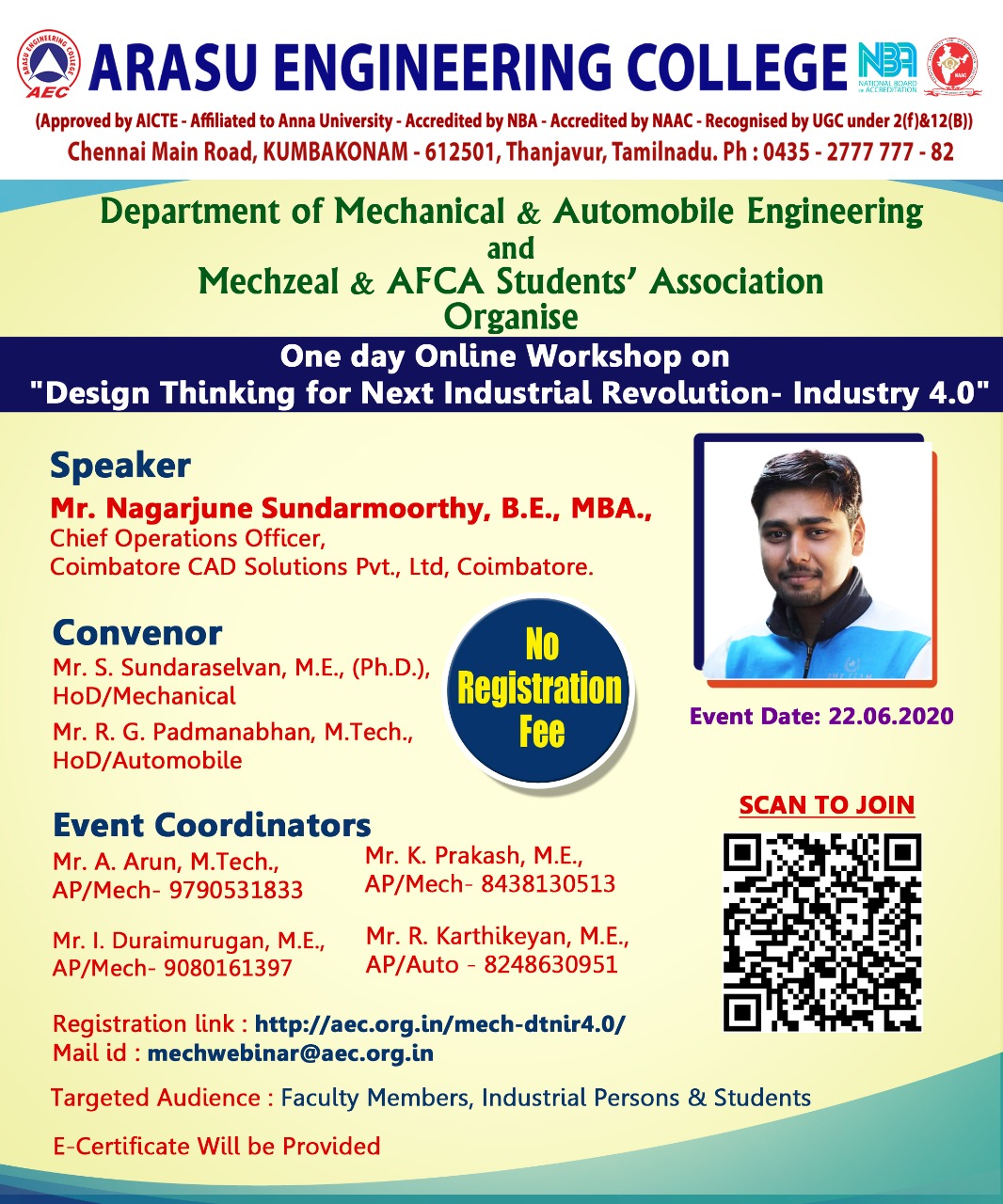 for the One day Online Workshop on “Design thinking for Next industrial Revolution-Industry 4.0”