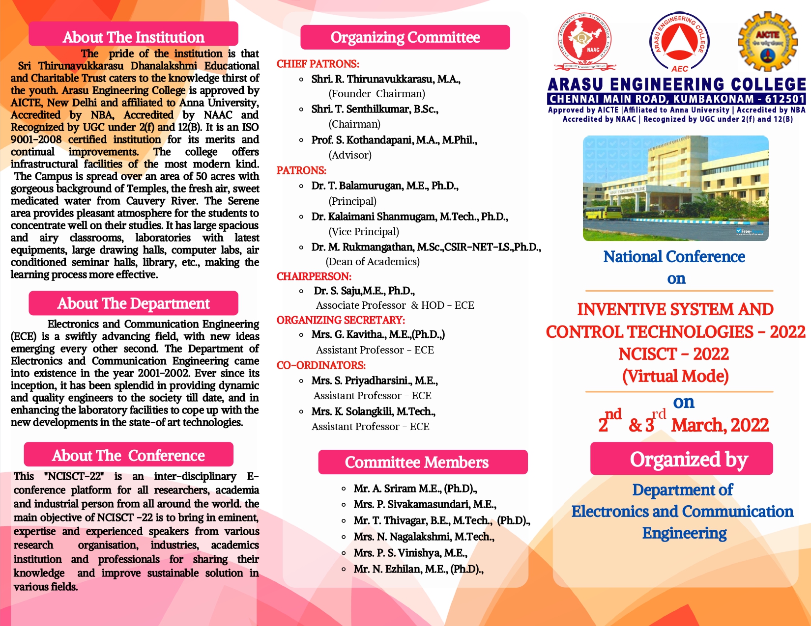 National conference on Inventive System and control Technologies – 2022 organized by the Department of Electronics and communication Engineering – Dated 06th and 7th April 2022 *New*