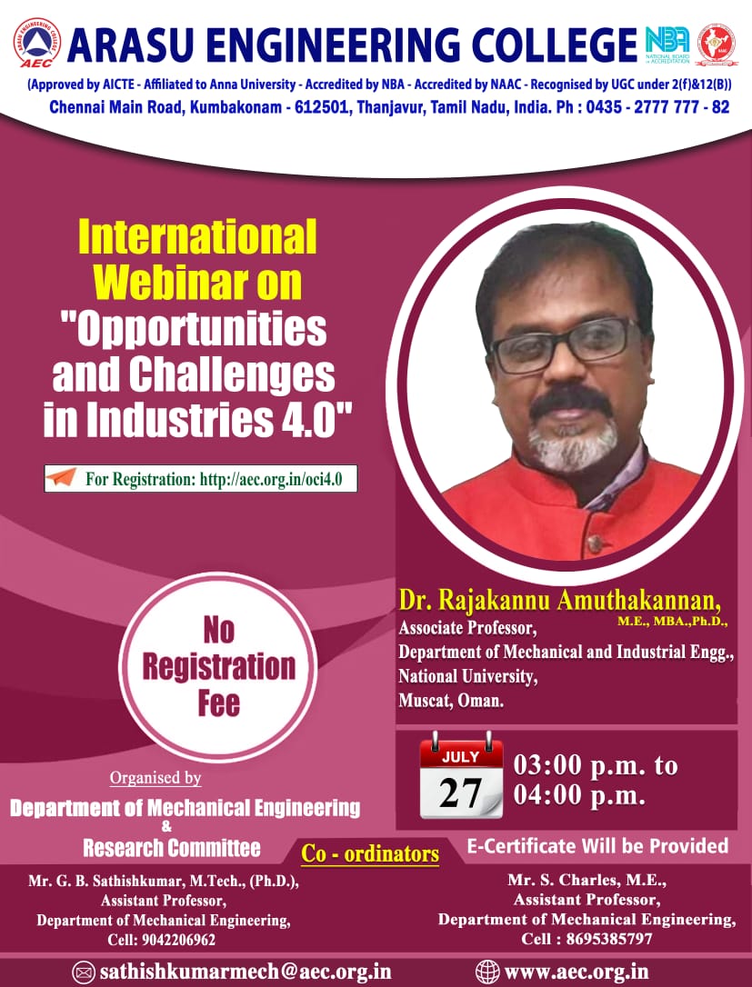 International Webinar on “Opportunities and Challenges in Industries 4.0”