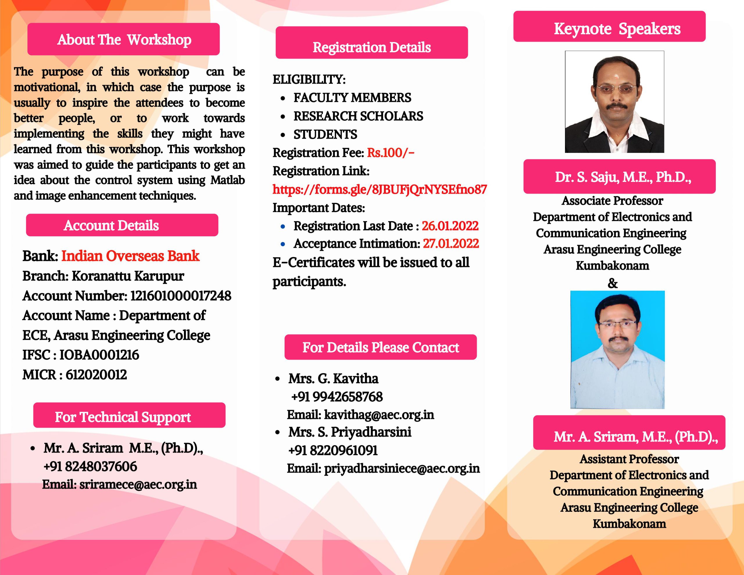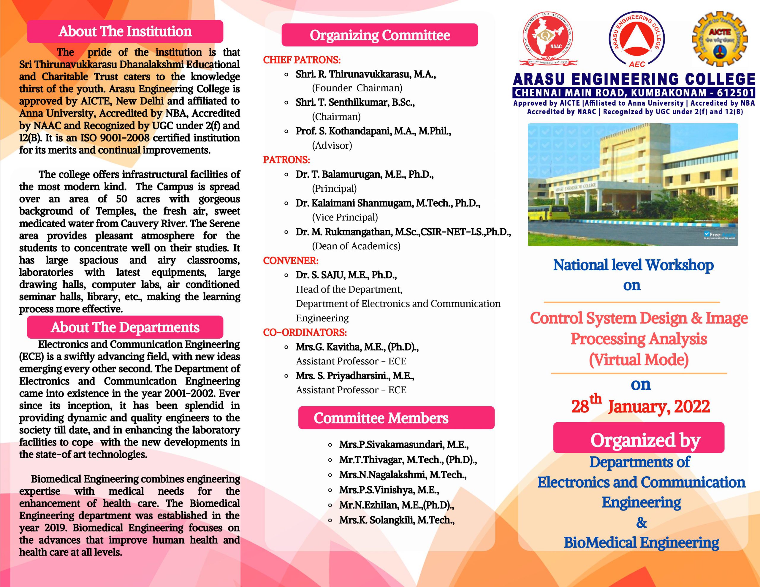 Department of ECE organized National Level workshop on Control System Design & Image Processing Analysis(Virtual Mode) on 28/01/2022