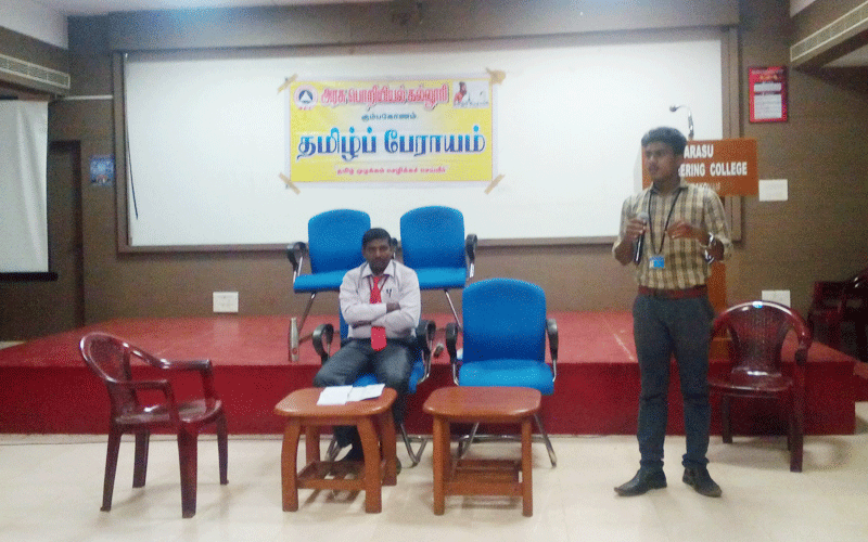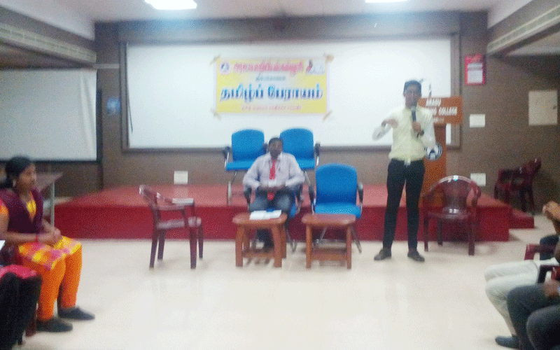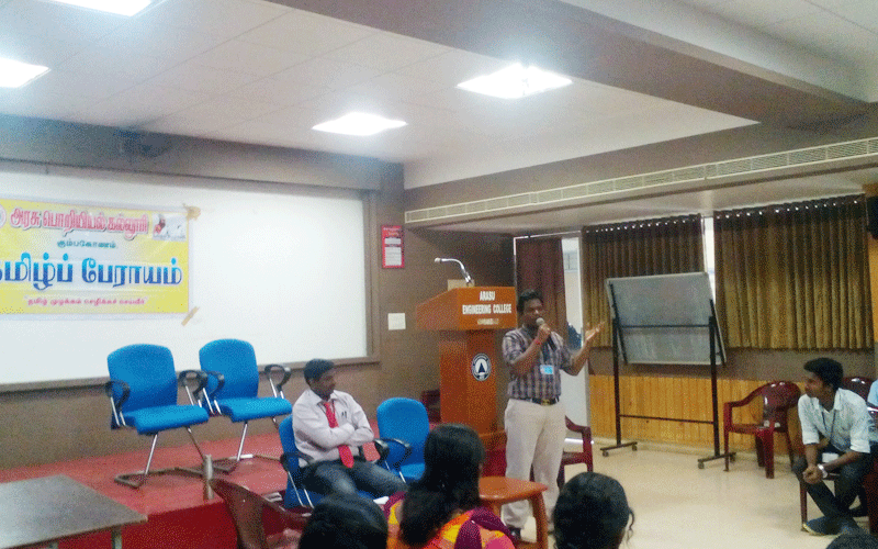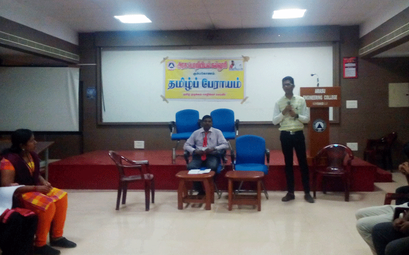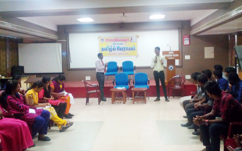 தமிழப் பேராயம் சார்பாக நடைபெற்ற நிகழ்ச்சியில் மு.குமரேசன் (4-ம் ஆண்டு இயந்திர பொறியியல்), செ. சக்தி (4-ம் ஆண்டு இயந்திர பொறியியல்), இ. நந்தினி (2-ம் ஆண்டு கணிப்பொறியியல்), ர. விஜயராகவன் (முதலாம் ஆண்டு கணிப்பொறியியல்), கா. ஹரிணி (முதலாம் ஆண்டு கணிப்பொறியியல்), மாணவ-மாணவியர்கள் சிறப்பாக மாணவர்களை ஊக்கமூட்டும் வகையில் சிறப்புரை ஆற்றினர்