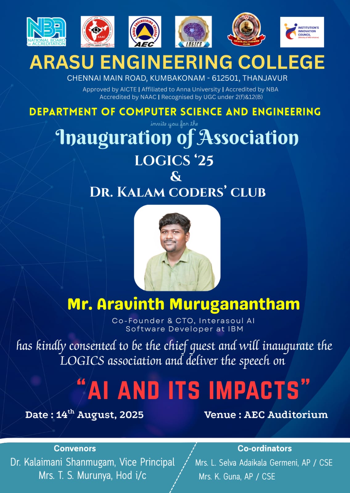 The Department of Computer science and Engineering organizes the Association inauguration of Logics’25 and Dr. Kalam Coders’ Club on 14.08.25