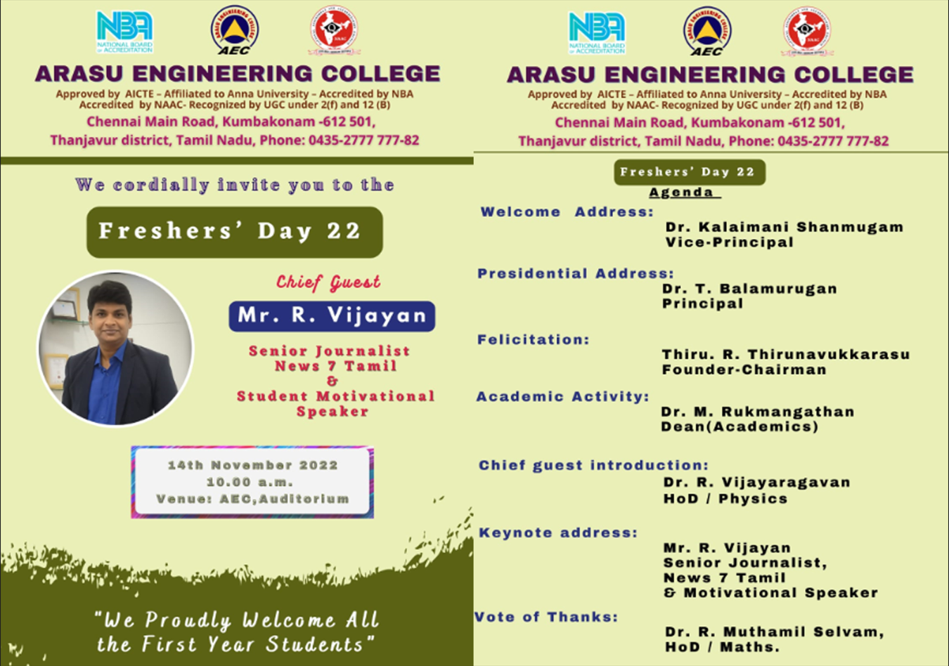 We cordially invite you to the Freshers’ Day 2022 on 14th November 2022