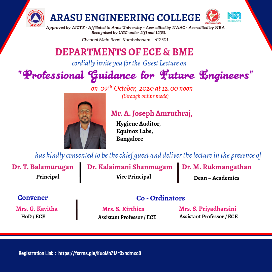 Webinar on ” Professional Guidance for Future Engineers ” on 9.10.2020 at 12.00 noon